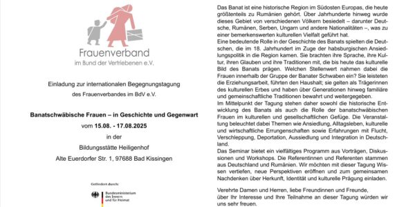 Zweite Internationale Begegnungstagung des Frauenverbandes im BdV e.V. in 2025