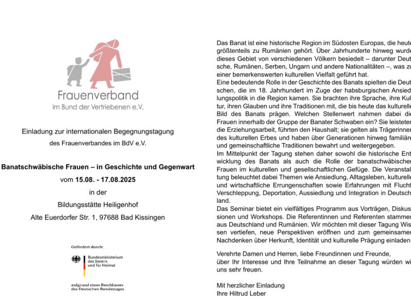 Tagung des Frauenverbandes im BdV e.V. im Heiligenhof, vom 7.-9.08.2022 Wie alle ...
